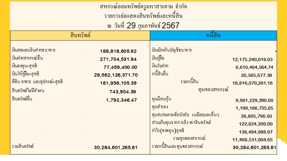 สินทรัพย์และหนี้สิน ประจำปี พ.ศ. 2567